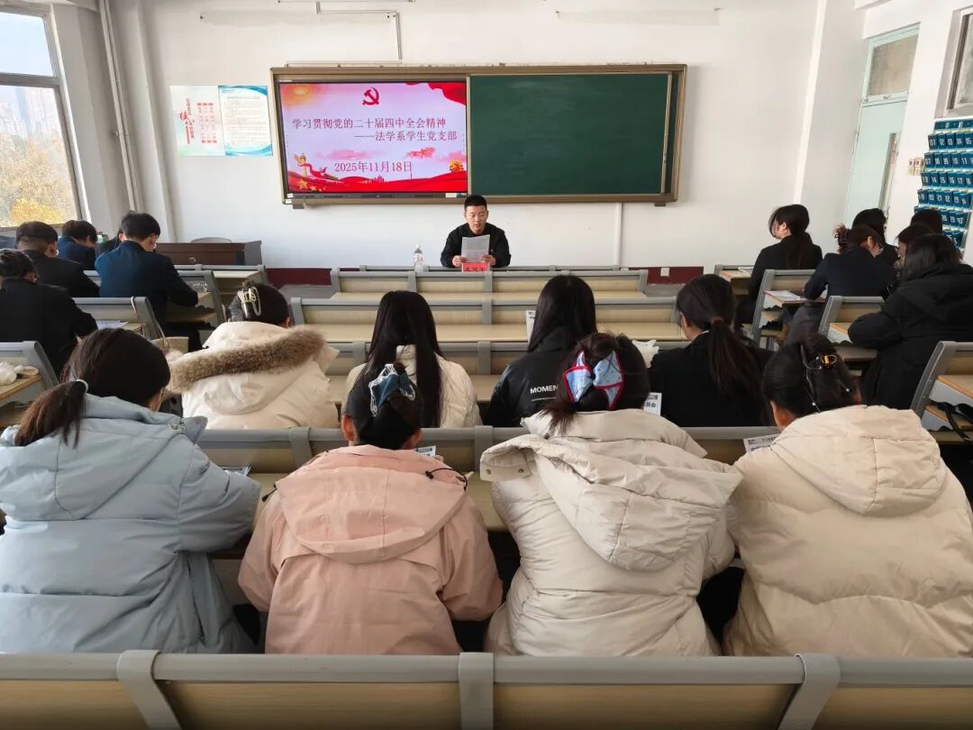 为深入学习贯彻党的二十届四中全会精神,切实将思想和行动统一到全会部署上来,11月18日,成人漫画法学系学生党支部和知识产权系学生党支部分别于西校区10#A529、B507召开学习贯彻党的二十届四中全会精神主题党日活动,法学系学生党支部书记孟冠军、知识产权系学生党支部书记李宁主持活动,各学生党支部全体党员参与专题学习。