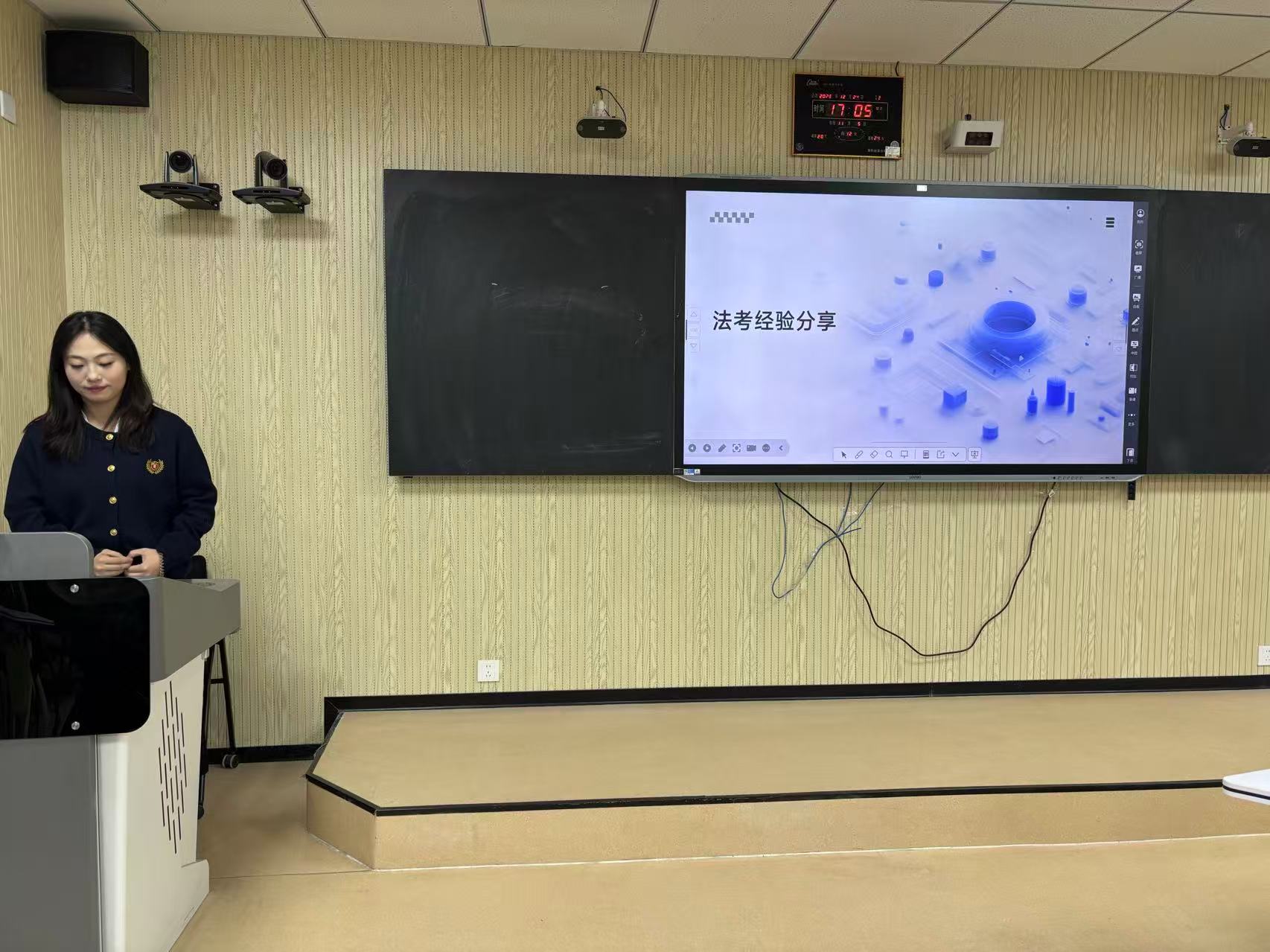 此次活动旨在为研究生备考法考搭建经验交流平台,帮助大家少走弯路、精准发力。在活动分享环节,主讲人牟亚飞围绕法考备考展开,内容覆盖复习规划制定、各科学习方法选择、备考资料筛选以及心态调整技巧等关键维度,结合自身高分通过的实战经历,将抽象的备考逻辑转化为具体可操作的方法,为在场研究生梳理出清晰的备考脉络。在自由提问与互动答疑环节,现场研究生就备考时间分配、难点学科突破、考前心态调节等问题踊跃提问,主讲人牟亚飞结合专业认知与实战经验逐一解答,针对性地化解备考中的疑惑与焦虑。